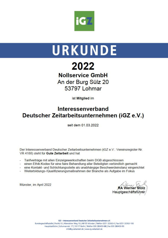 Damit setzen wir ein klares Zeichen und schaffen Vertrauen, denn der iGZ steht seit über 20 Jahren für gute Zeitarbeit. Wir sind nun Teil einer starken Gemeinschaft und setzen uns für Leistungen und Qualitätsstandards der Zeitarbeitsbranche ein.